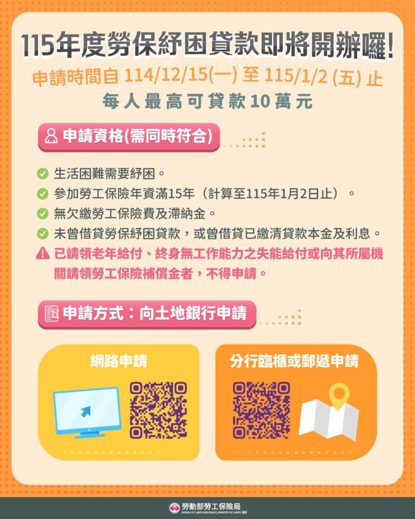 【政令宣導】115年度 勞保紓困貸款 即將開辦囉!