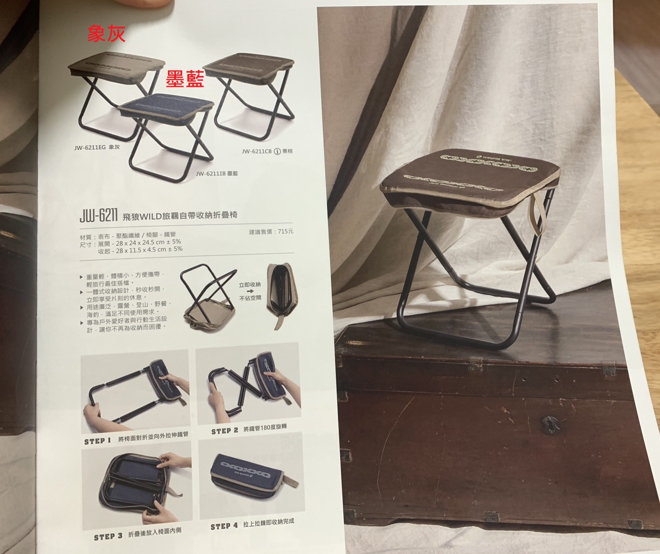 (2)飛狼WILD旅羈自帶收納折疊椅 (顏色選項:墨藍、象灰)